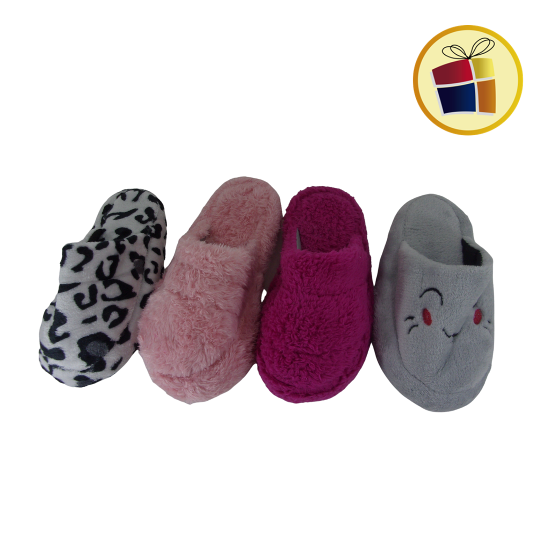 Pantuflon para dama, surtido en estampado, tela peluche, con plataforma firme, bordado.