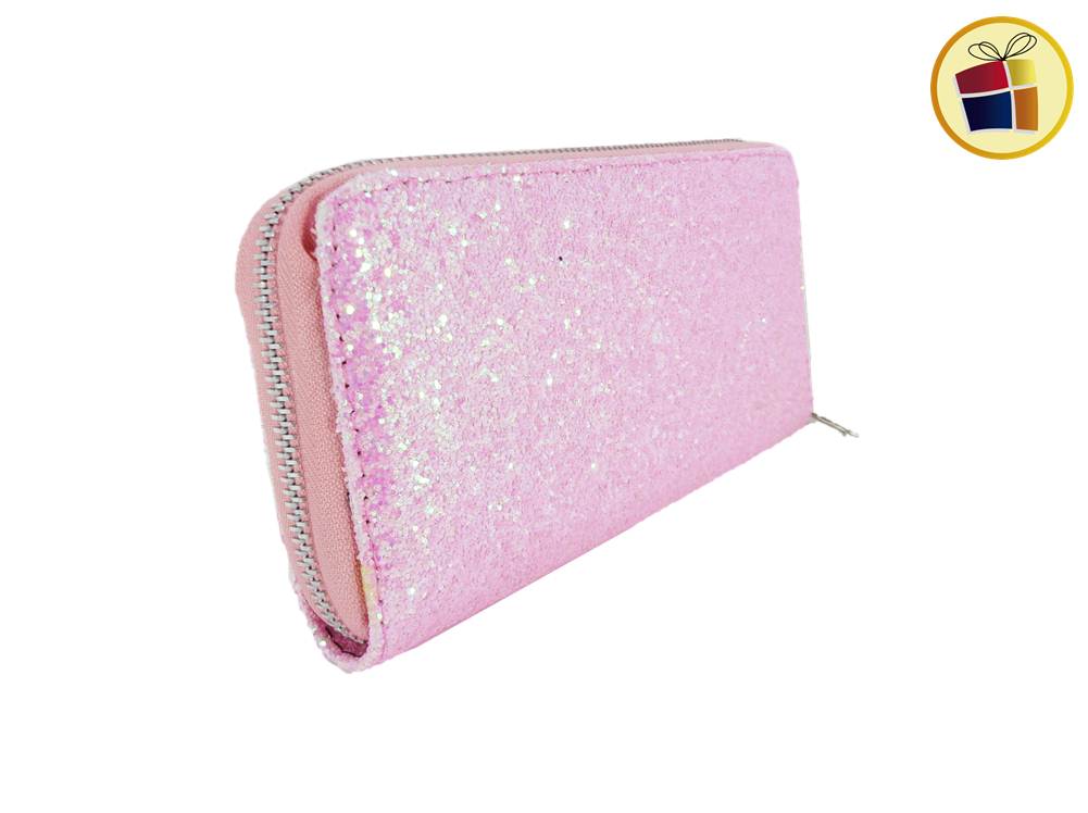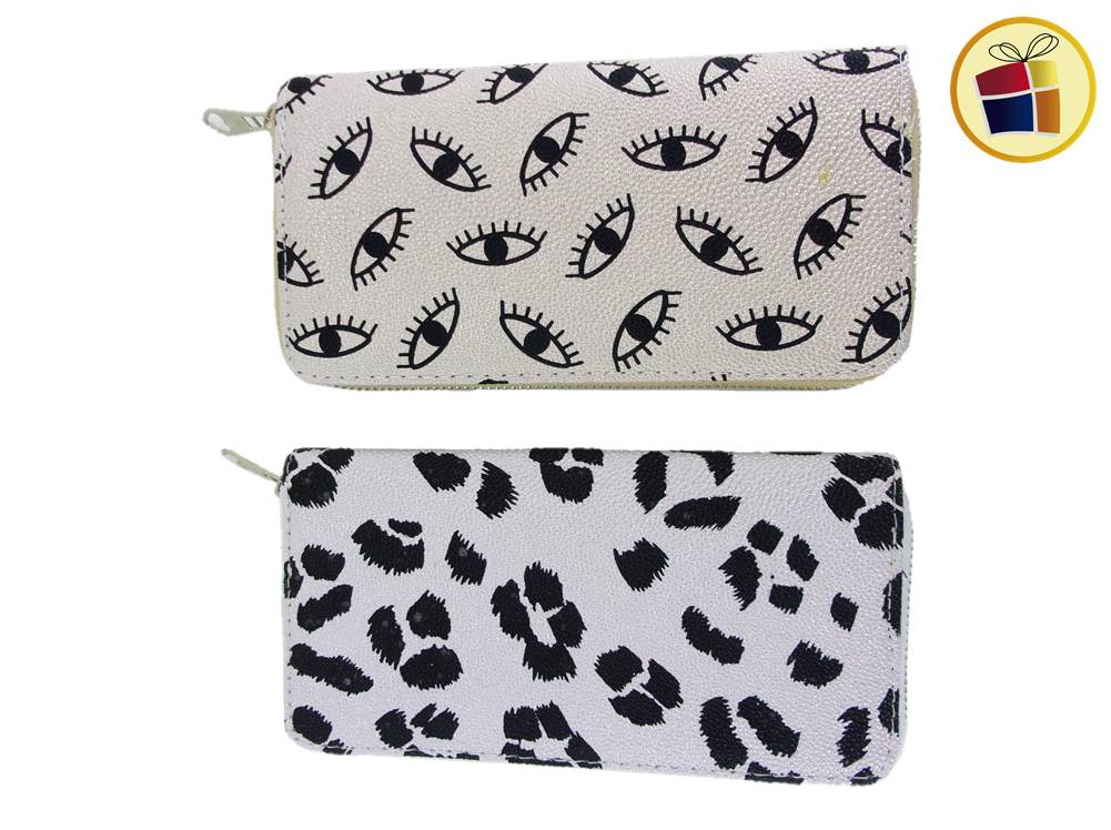Con 1 cierre, brilloso y estampado de cuerina con relieve punteado, con division para tarjetas y bolsillo con cierre para monedas.