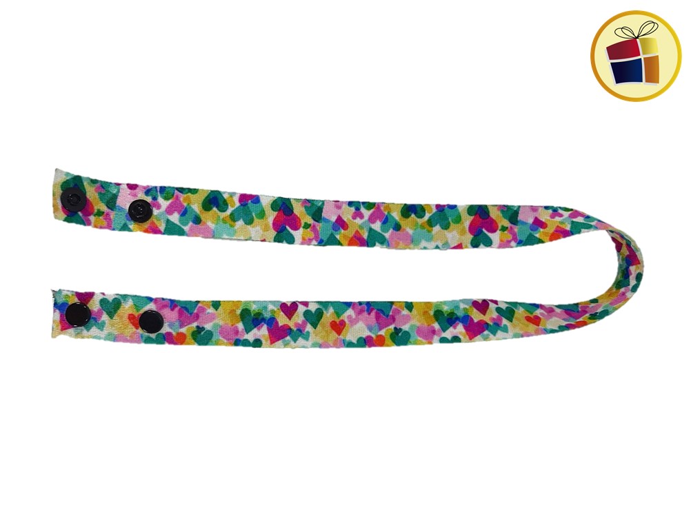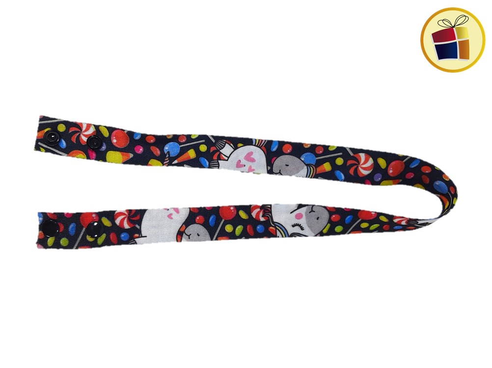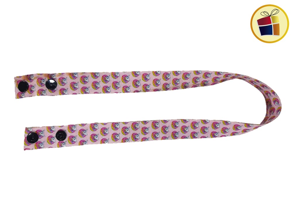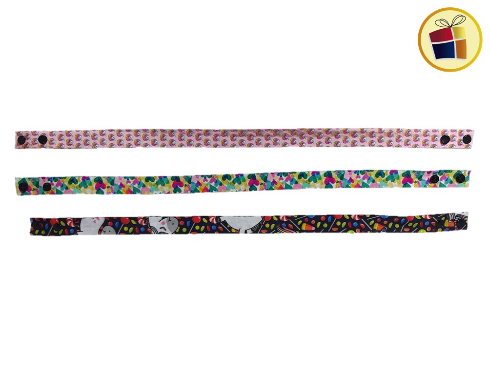Porta barbijo infantil surtido en estampado con botones de plastico a presion en las terminaciones.