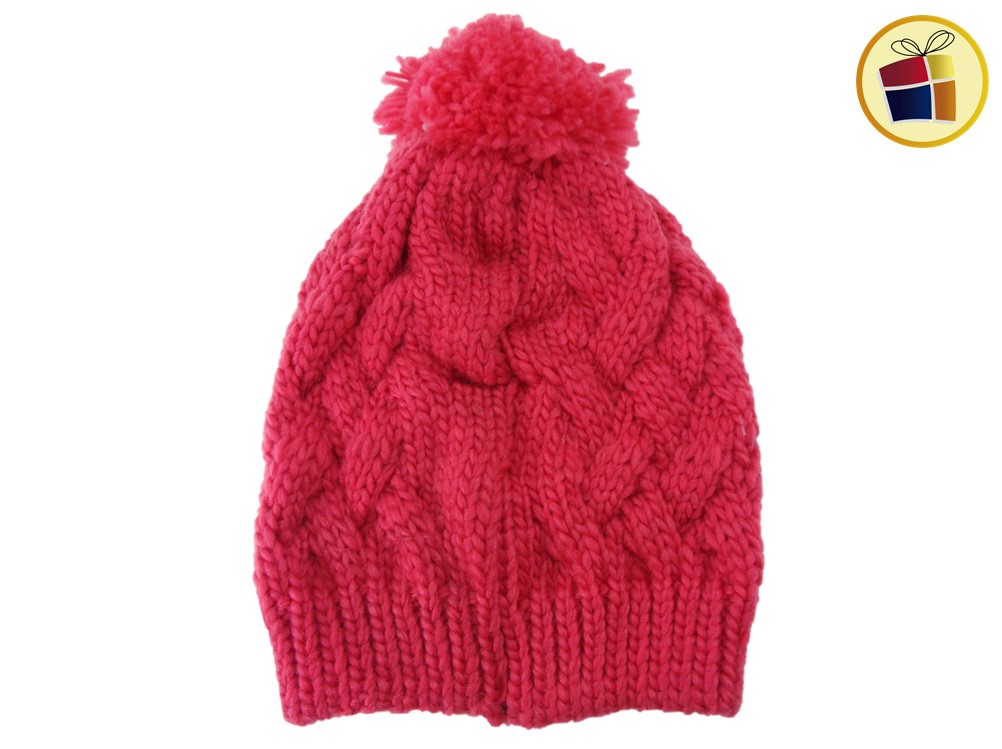 Gorro para dama de lana grueso a crochett con pompon.