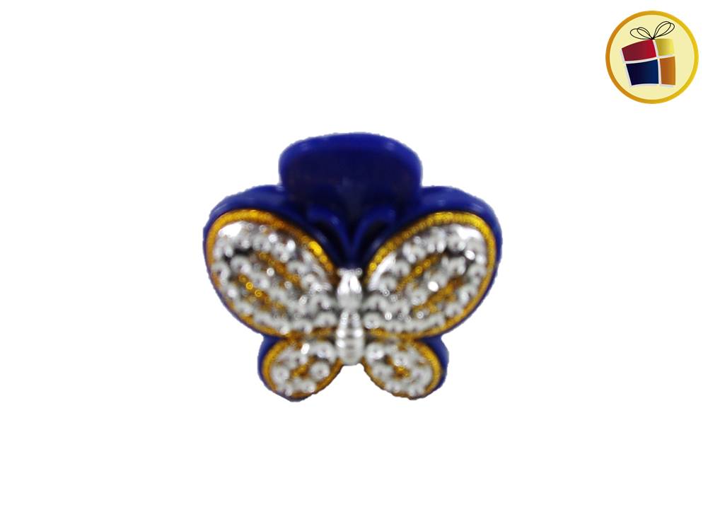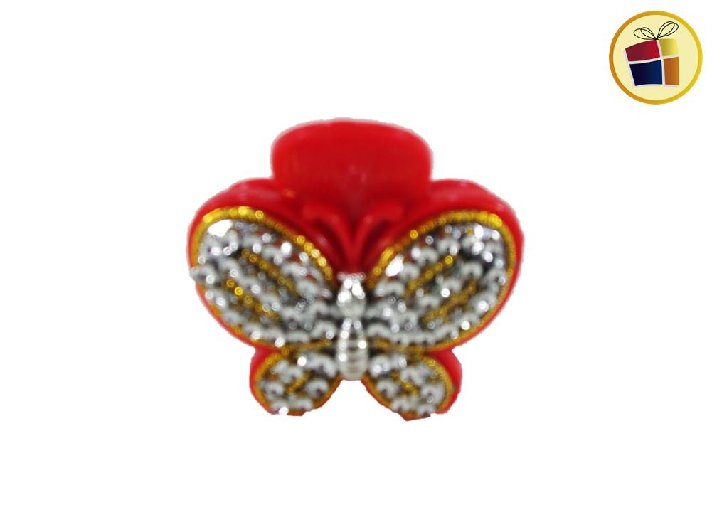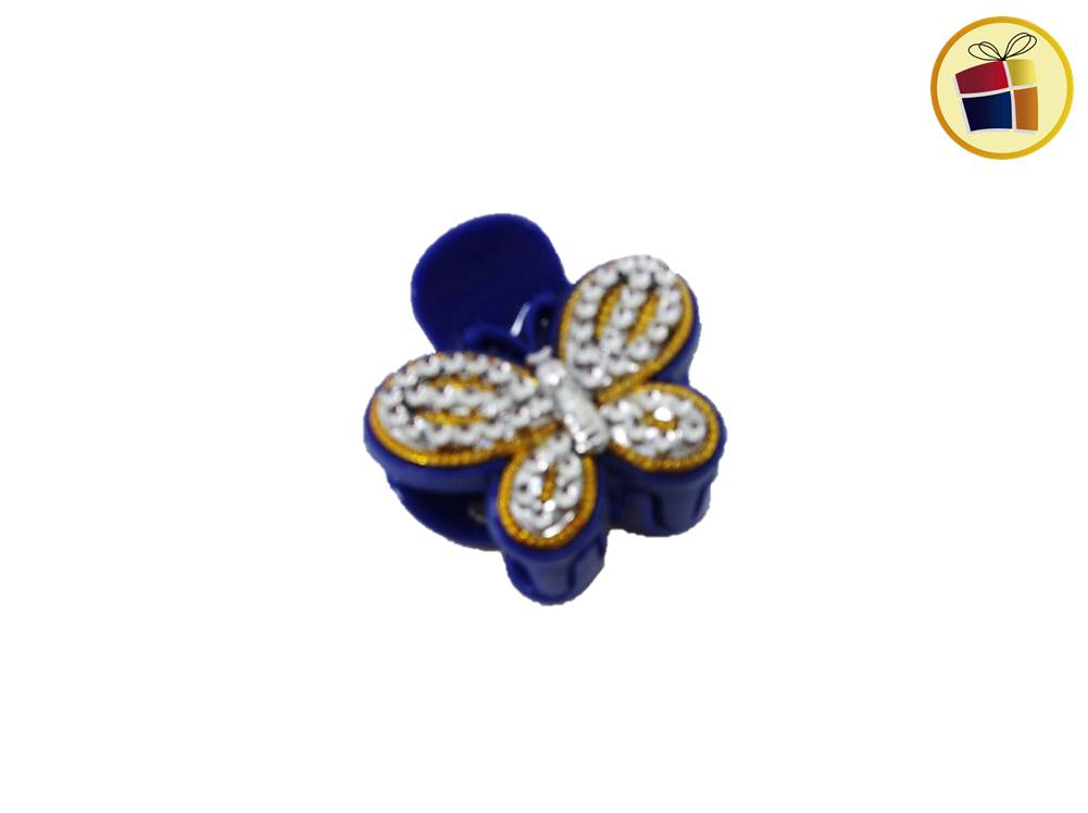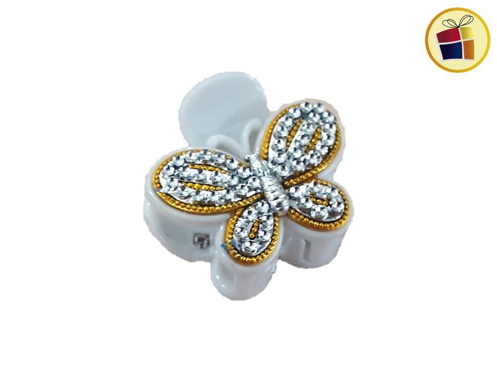 Broche para cabello mediano con stras y forma de mariposa.