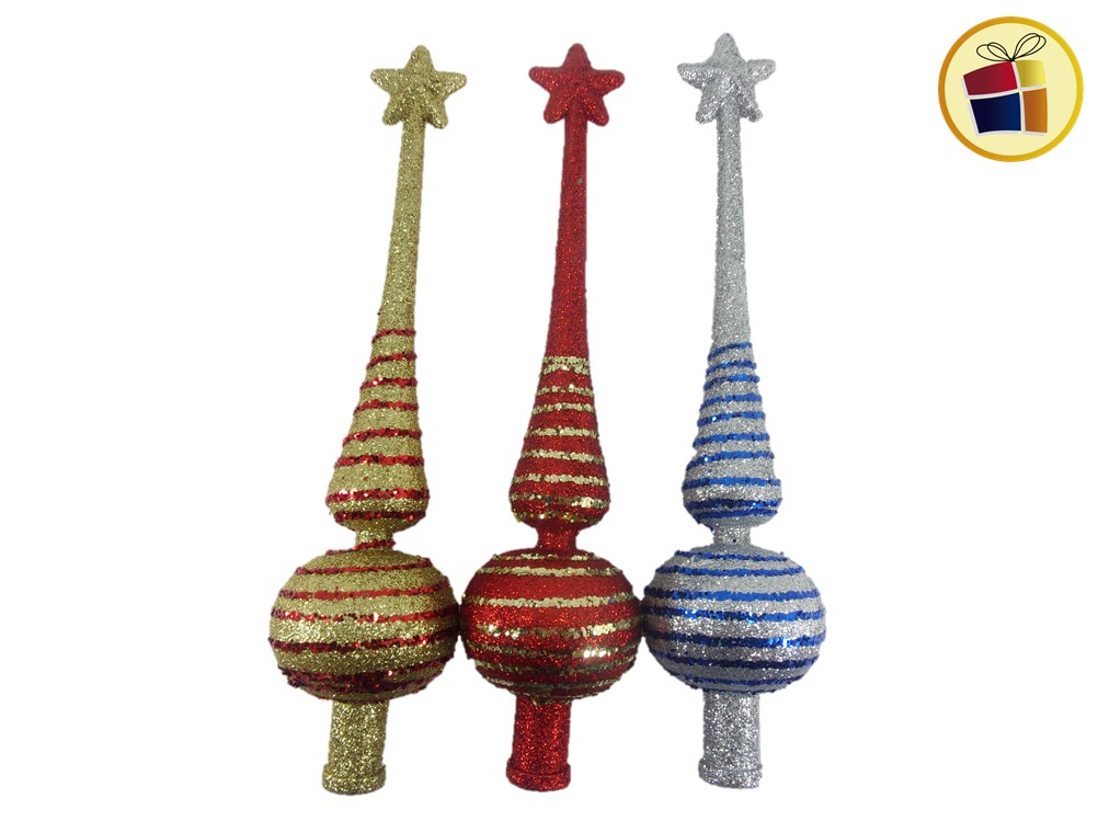 Puntal Navideño Brilloso con punta estrella de color con rallas