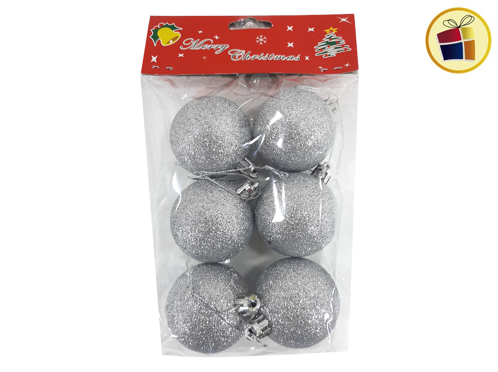 "P.C1.C2"GLOBO N° 5 X6 PLATA CON BRILLO NAVIDEÑO FLUSS (BX-0027/700275)
