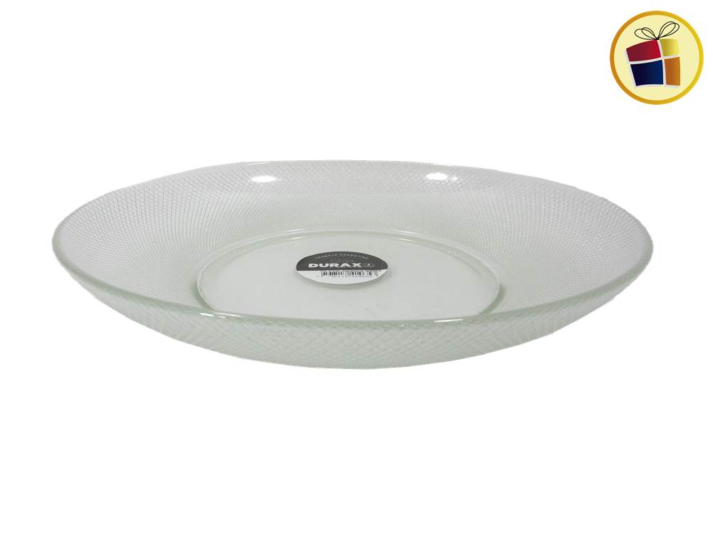 Plato Hondo de vidrio calado en los costado en la parte de abajo liso.