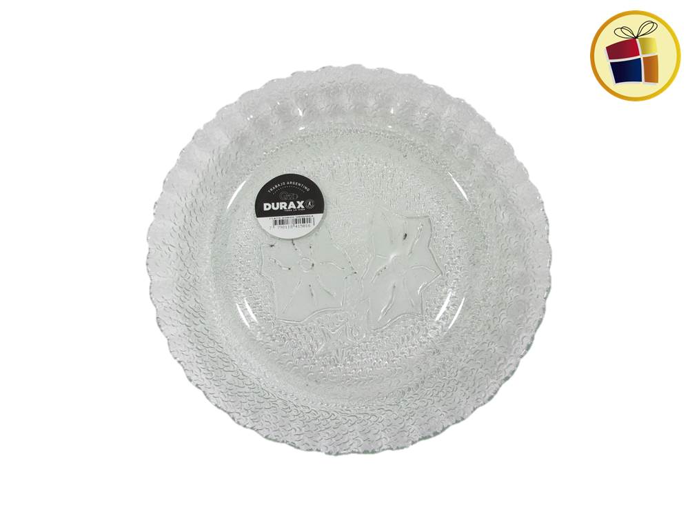 Plato hondo de vidrio tallado con dibujo de orquidea.