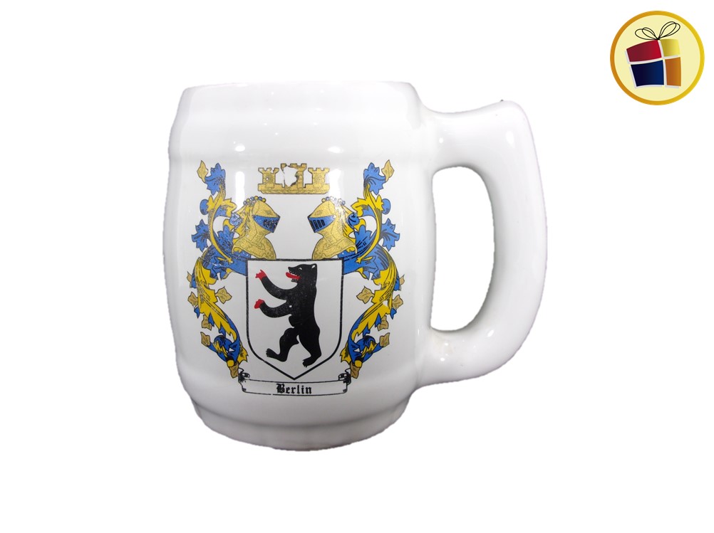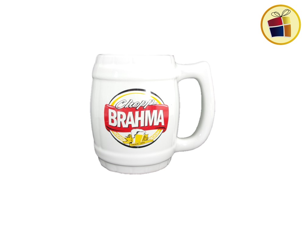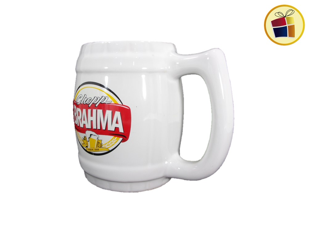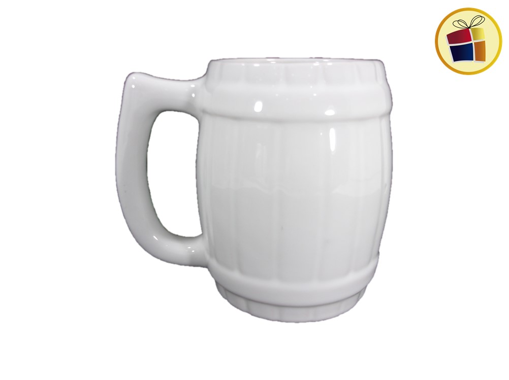 Jarro Chopp cervecero de ceramica con manija, color blanco con estampado.