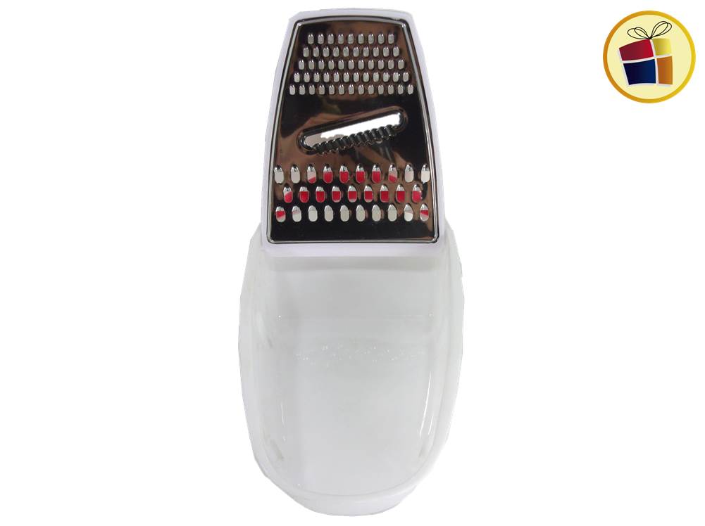 Rallador de metal con bandeja y manija plastica.