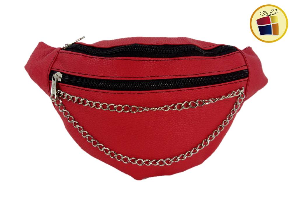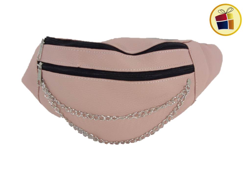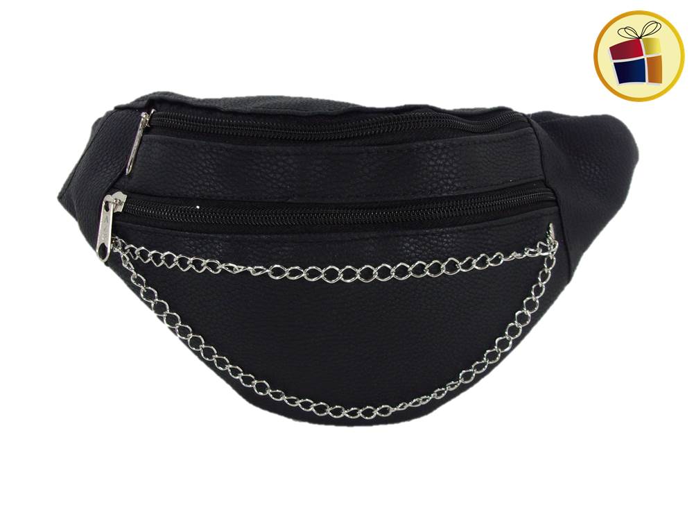 Riñonera de cuerina lisa con doble cadena finas, con dos cierres.