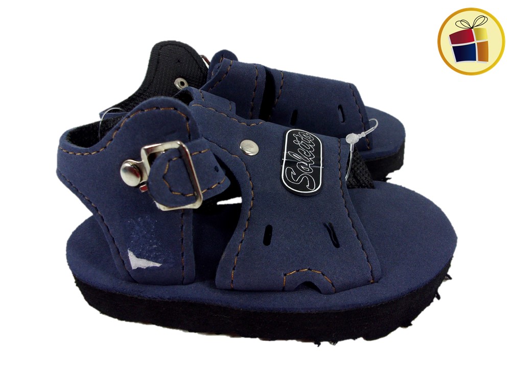Sandalia para bebes con abrojo y hebilla de goma y cuerina.