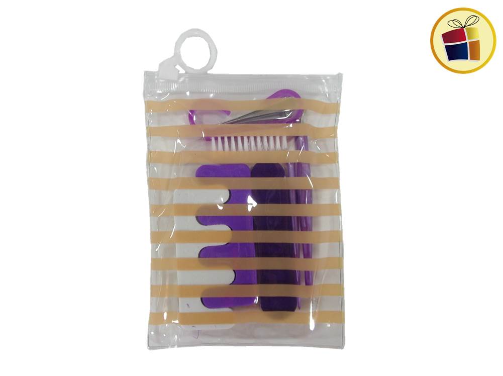 Set de manicura x7 piezas con estuche de plastico, incluye alicate, lima de uña, saca cuticula, cepillo, separador de dedos.