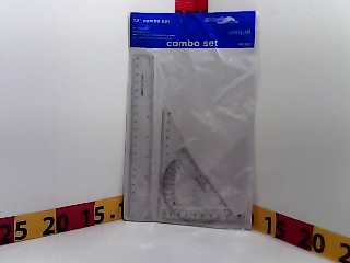 Peso: 20 gr; contiene 1 regla 20cm, 2 escuadras y 1 semicirculo