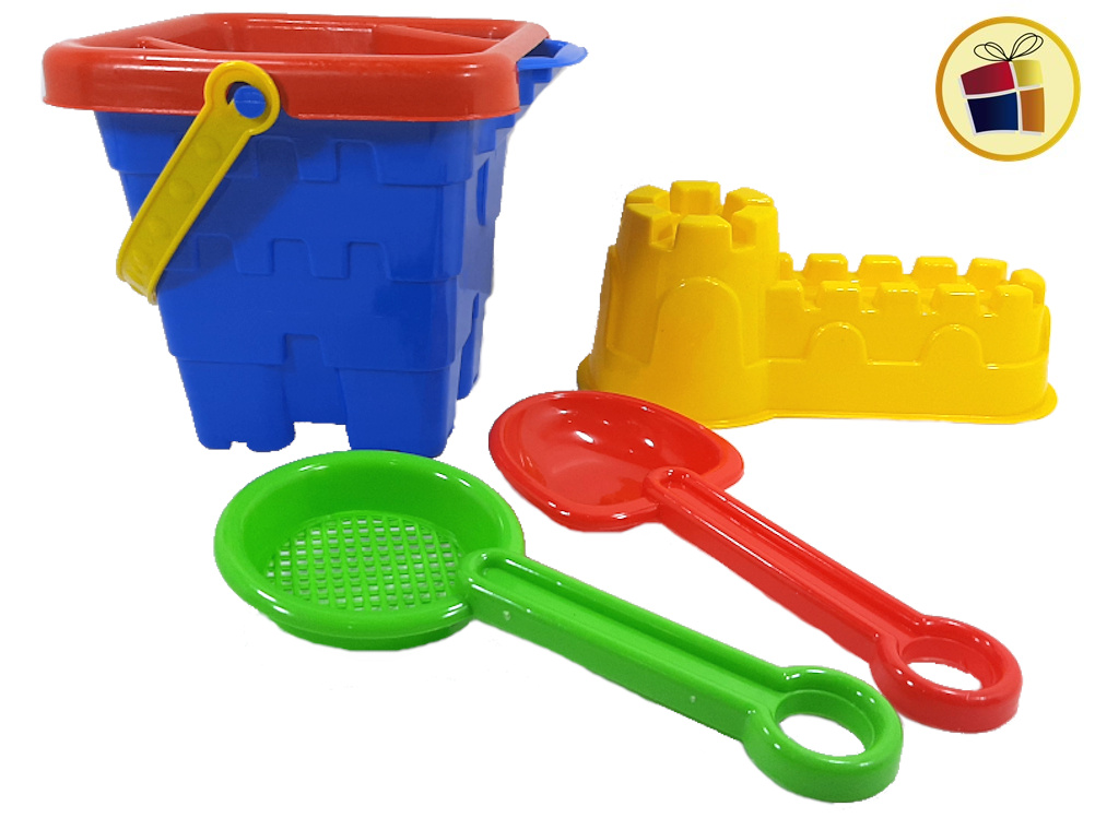 Set de playa, balde cernidor + 2 palas + 1 molde.