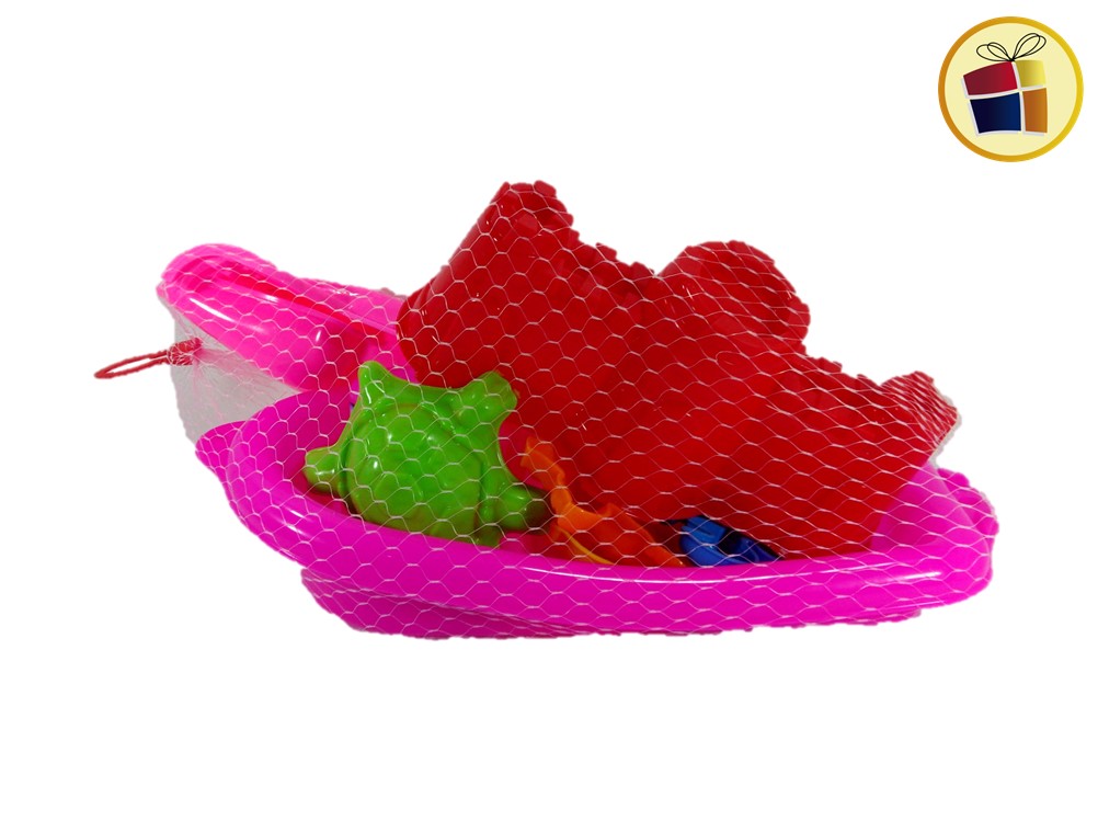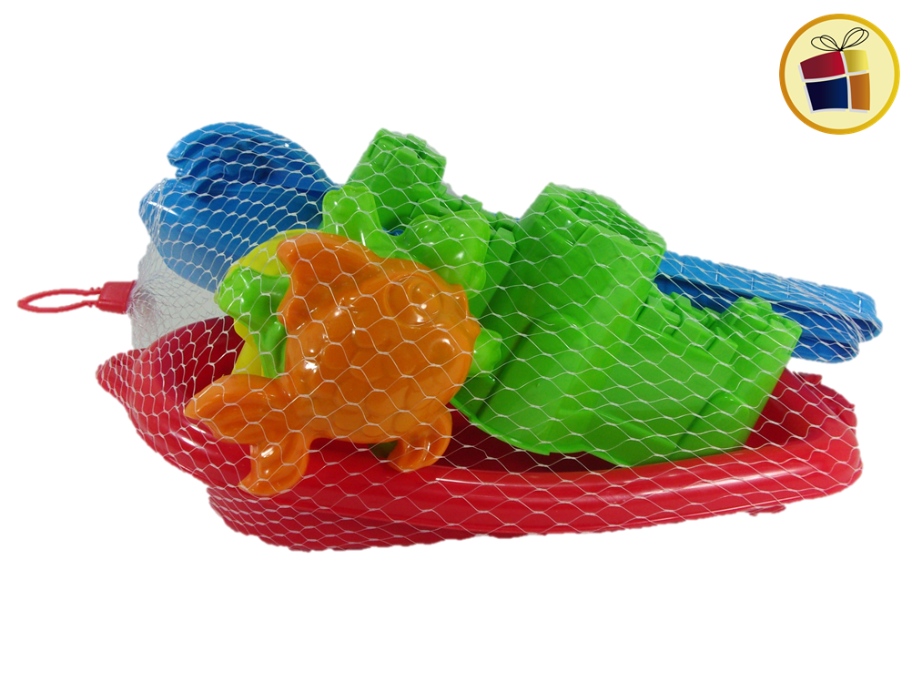 Set playa incluye Barco + castillo + pala + rastrillo + 4 moldes variado en colores