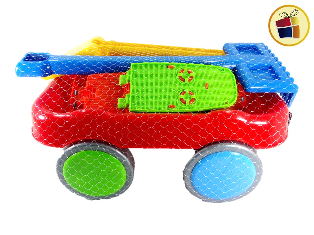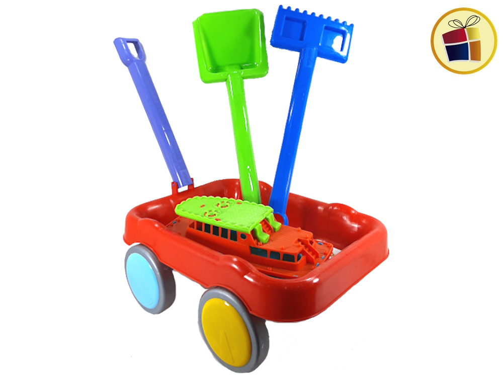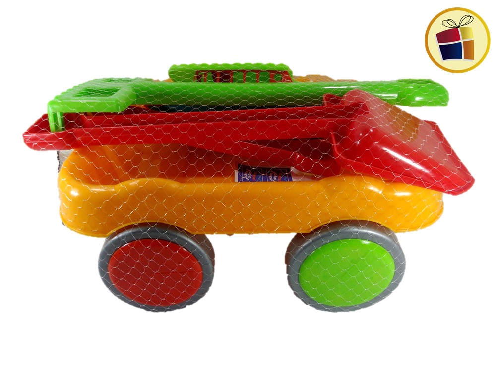 Set playa incluye carrito + rastrillo + pala de plastico variado en colores