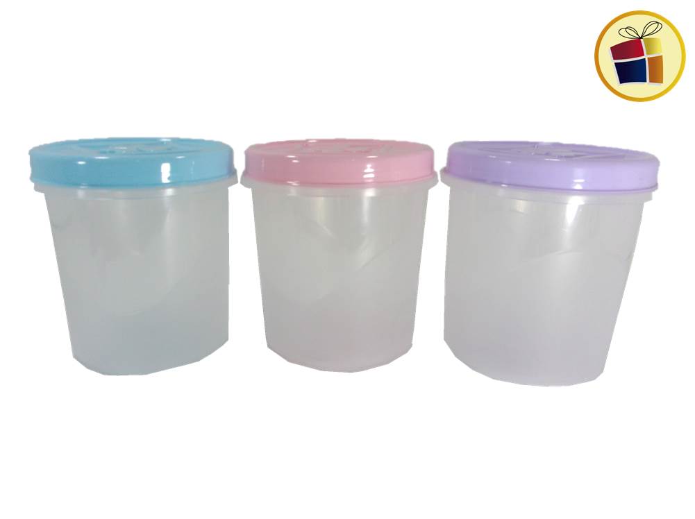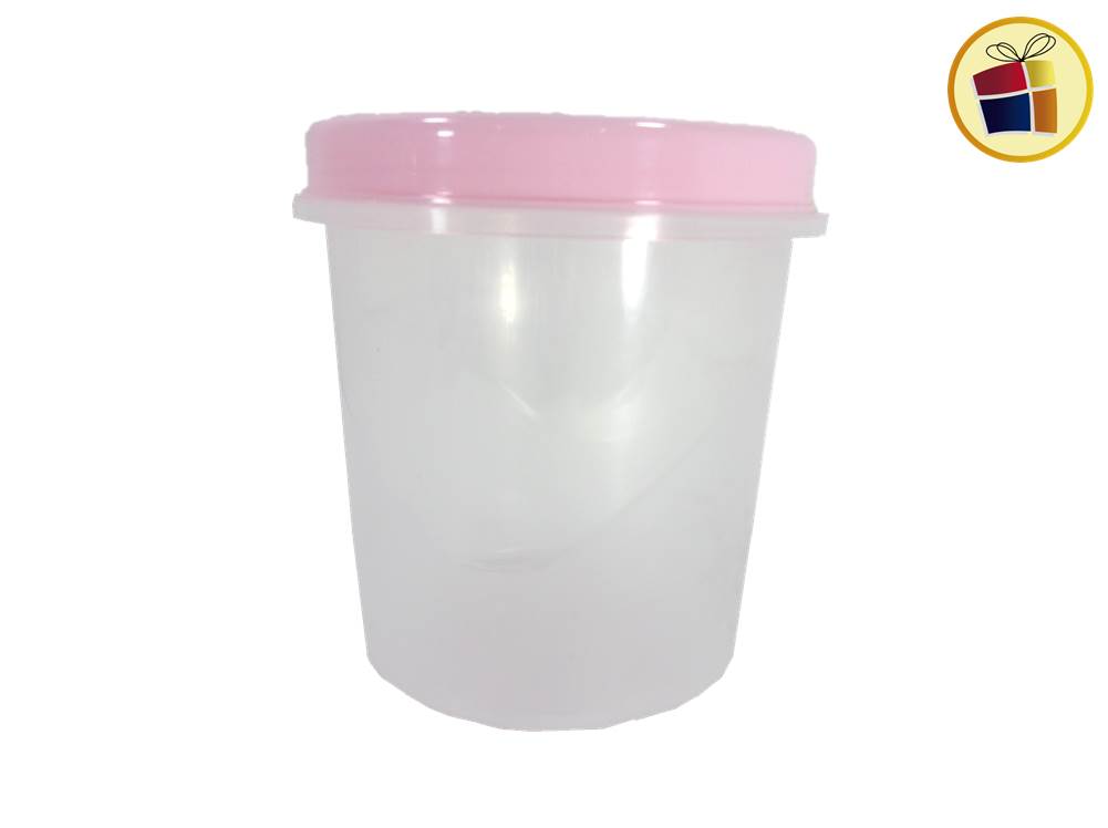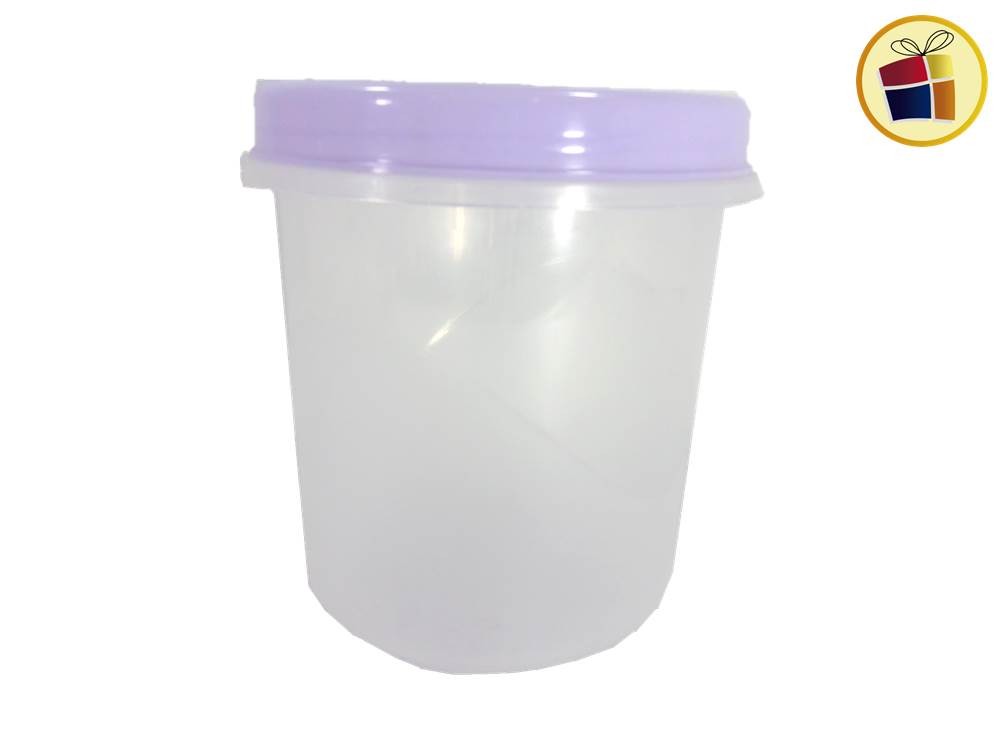 Tarro redondo chico de plastico con tapa a rosca tallado forma de trebol.