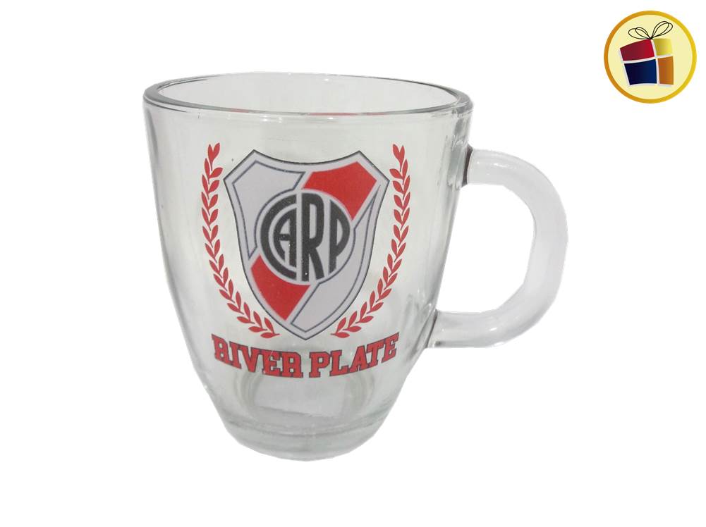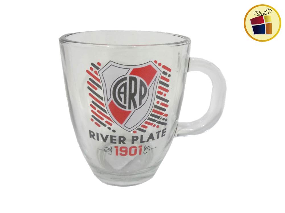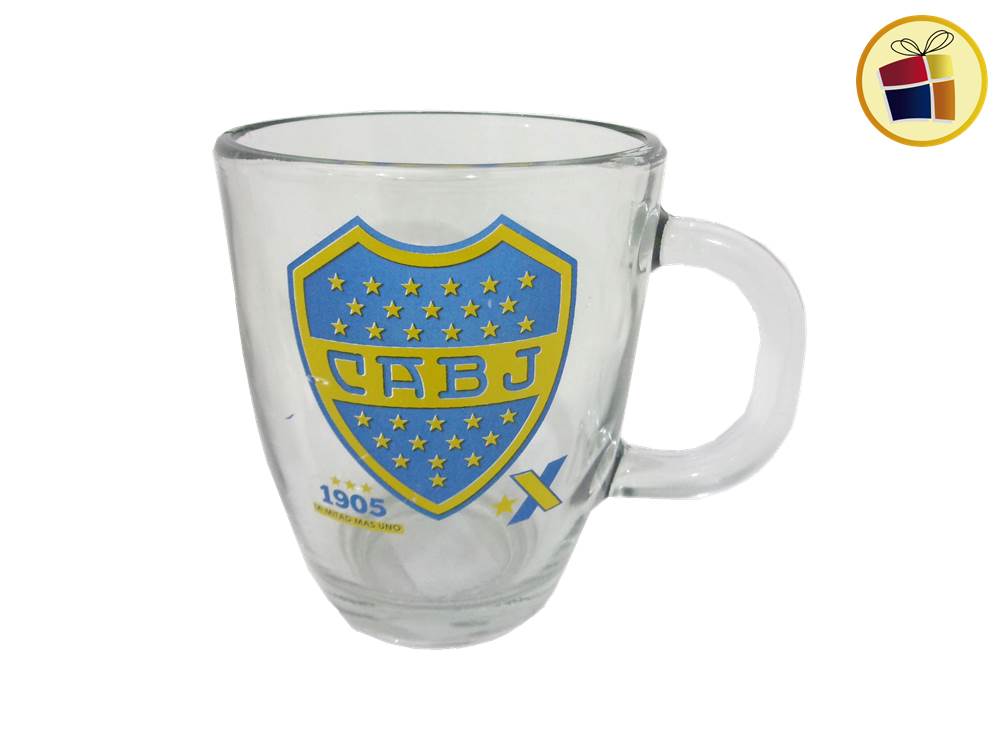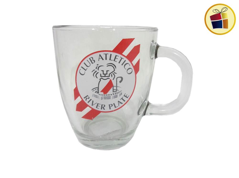 Tazon de vidrio con manija, estampado con logo.
