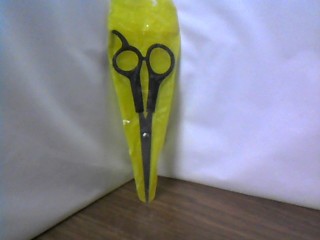 Tijera chica importada con cola en estuche amarillo individual