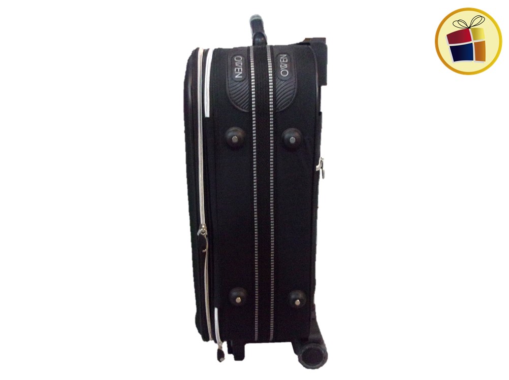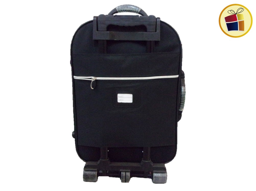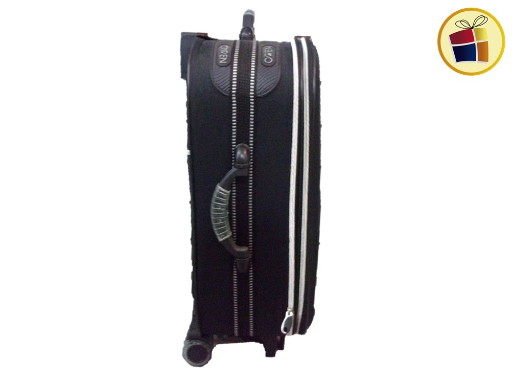 Valija chica lisata con dos cierres, el segundo cierre contiene tela adicional para ampilar, con tres ruedas, soporte, con interior forrado, Bolsillo con red, incluye candado con codigo.