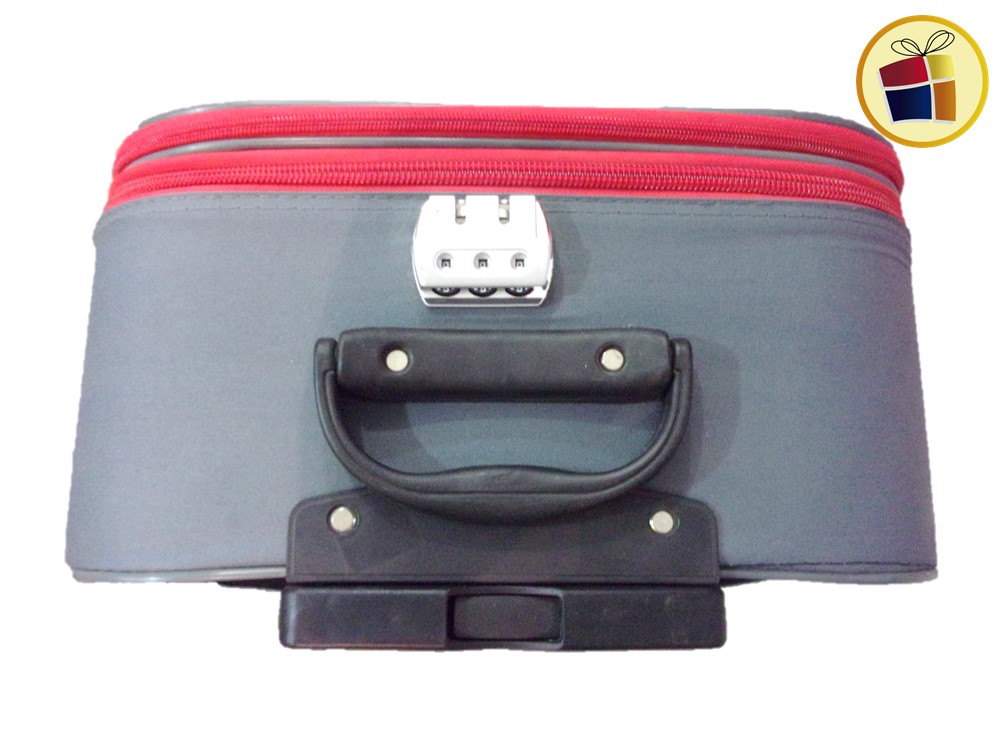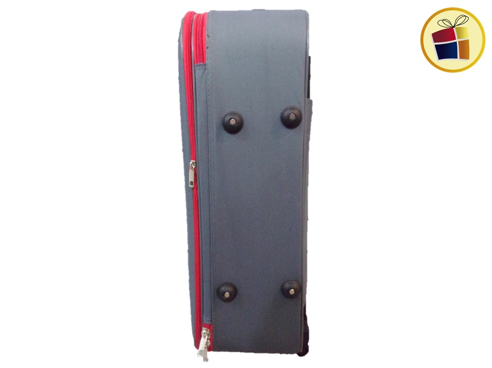 Valija Grande Lunden con traba contiene dos cierres en el segundo cierre incluye una tela adiccional para ampliar, tiene dos manijas y dos rueditas con soporte.
