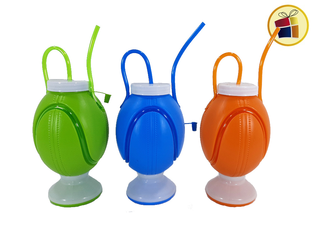 Forma de balon de rugby, con sorbete, con tapa a rosca.